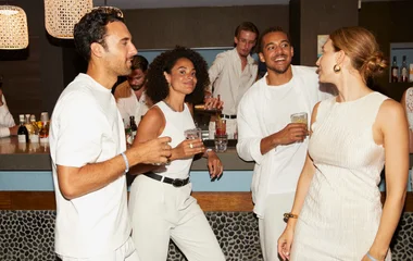 昼は一緒にスポーツやアクティビティ、夜はバーで語らう——。