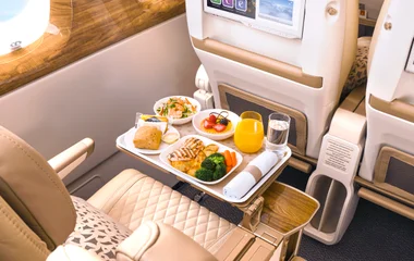 美味しいマルチコースのお食事を、ロイヤル・ドルトンの陶器とステンレス製のカトラリーでお楽しみいただけます。お食事のお供に、シャンドンのスパークリングワインやエミレーツが厳選した様々なワインから、お気に入りのお飲み物をお選びいただけます。
