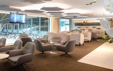 ブルネイ国際空港の「Sky Lounge」は、2004年のサービス開始以来、快適さを大切にした落ち着きのある空間をお届けしています。2017年のリニューアルを経て、ビジネスクラスのお客様およびRoyal Skiesゴールドメンバー専用のラウンジとして、さらに充実した設備を整えました。ラウンジ内では、バラエティ豊かなビュッフェスタイルのお食事とともに、出発前の時間をゆったりとおくつろぎいただけます。
